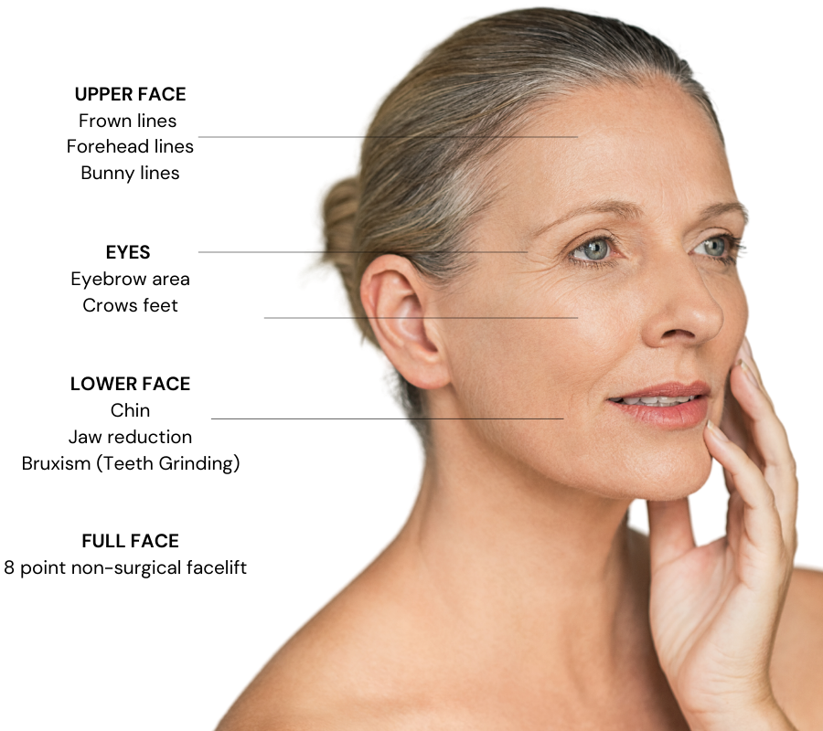 Anti-wrinkle Injections can improve the appearance of permanent dynamic lines such as frown lines. By limiting the muscles responsible for frown lines, crows feet and forehead lines the muscles relax and the area becomes smoother with less defined lines. Results are normally seen within two weeks and can last for up to 4 months.